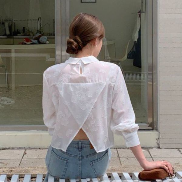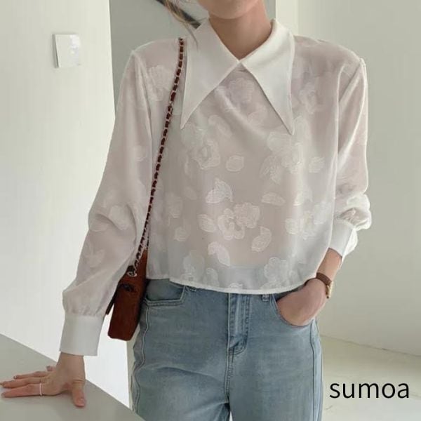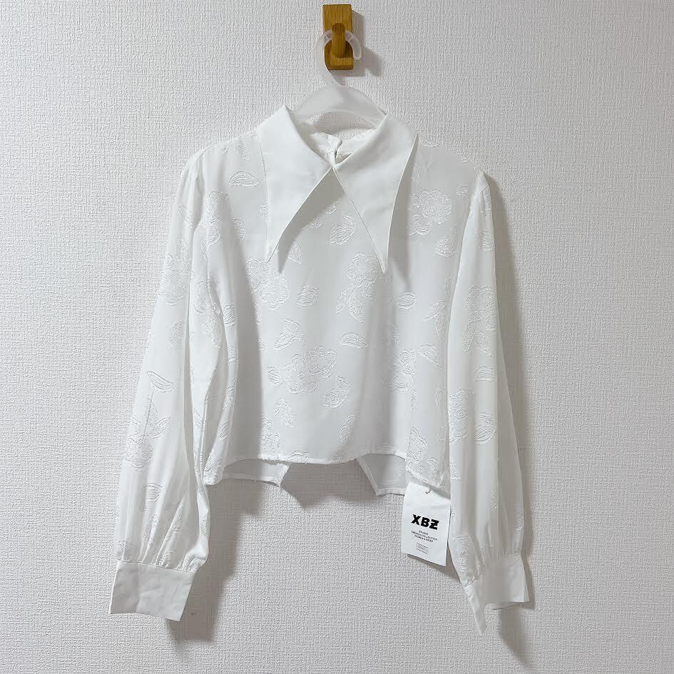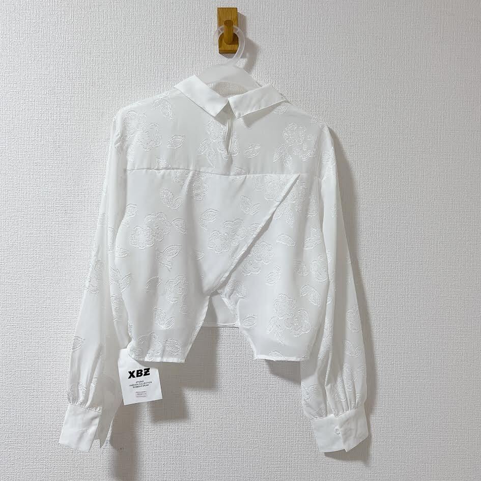 【即納】ビックカラークロップドブラウス バックスリット 花柄 フラワーモチーフ シャツ クロップド 長袖 ショート丈 スリット ドット フェミニン ガーリー トップス レディース 韓国 上品 大人 高見え おしゃれ