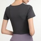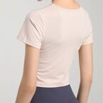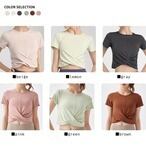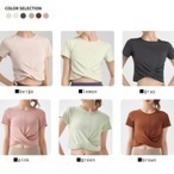 Tシャツ ツイスト ねじり 半袖 カットソー クロップド丈 ブラトップ カップ付き UVカット 紫外線カット 速乾 ヨガ ピラティス フィットネス ジム メッシュ 通気性 トレーニング ウェア ダンス スポーツ 普段着 カジュアル ホットヨガ 吸汗 ニット
