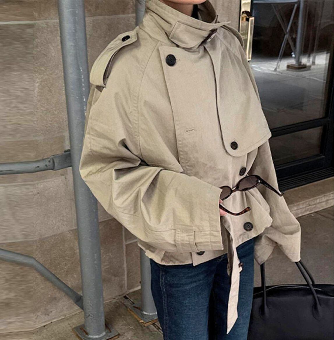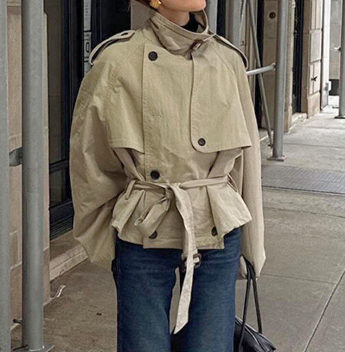 ショートトレンチコート スプリングコート ステンカラー ショート丈トレンチコート アウター レディース コート 羽織 春 通勤 通学 フェミニン ガーリー 韓国