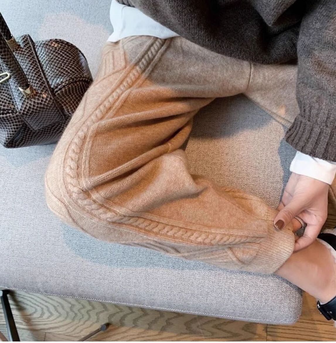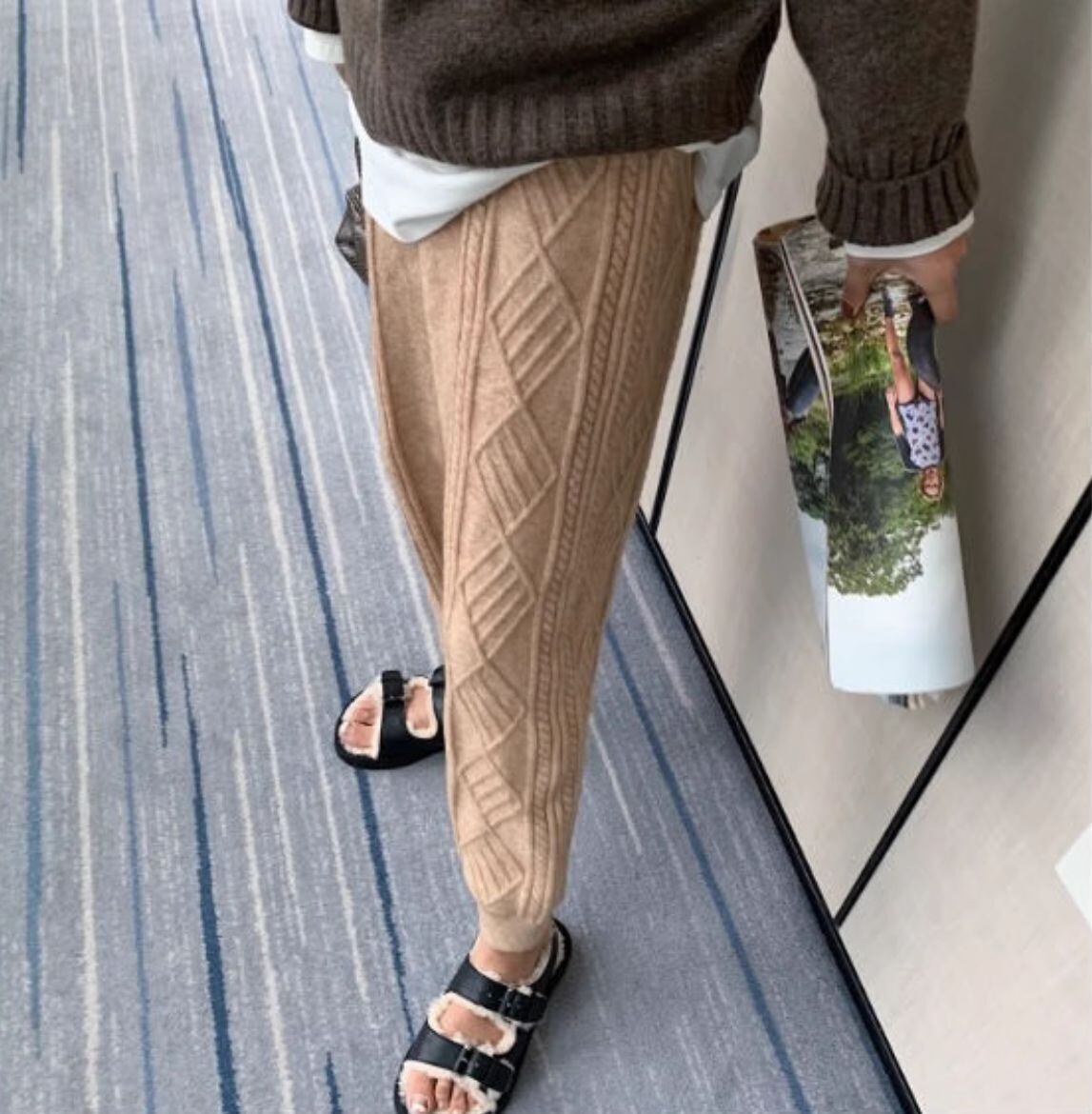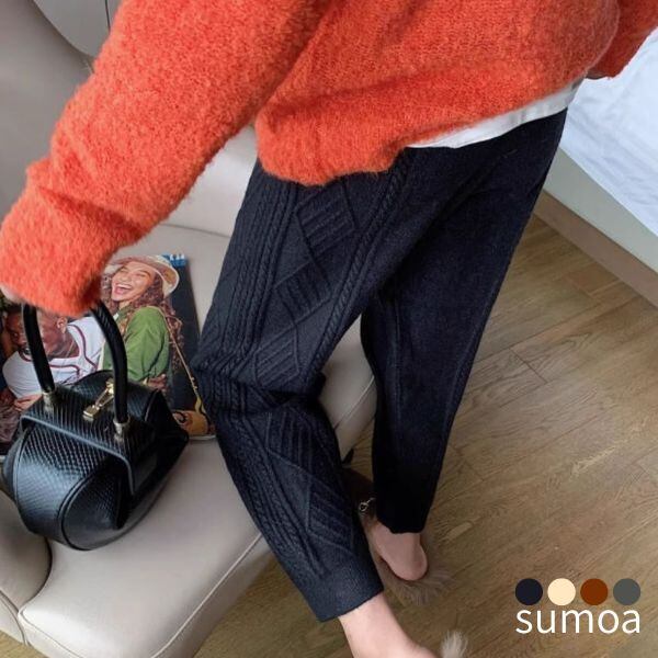 ケーブル編み ニットジョガーパンツ ジョガーパンツ ニットパンツ サルエル アラン編み イージーパンツ リラックスパンツ 美脚 レディース ロングパンツ ボトムス ズボン 秋冬 バルキー