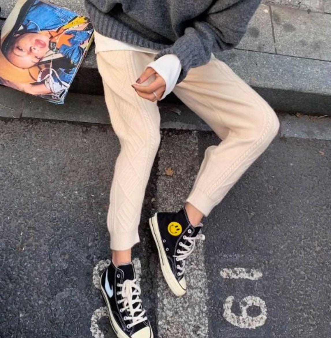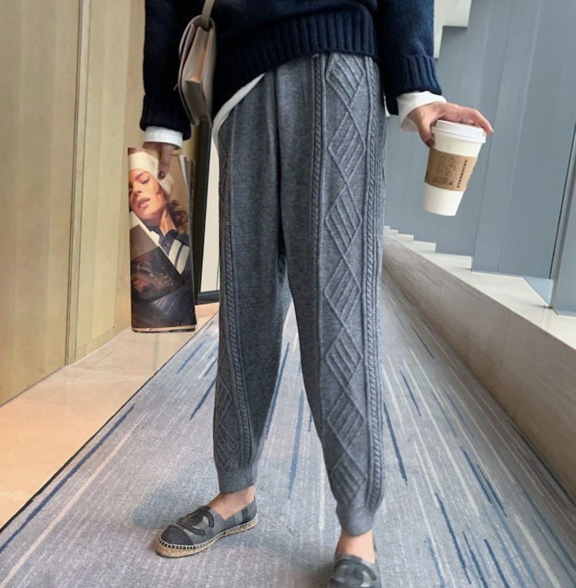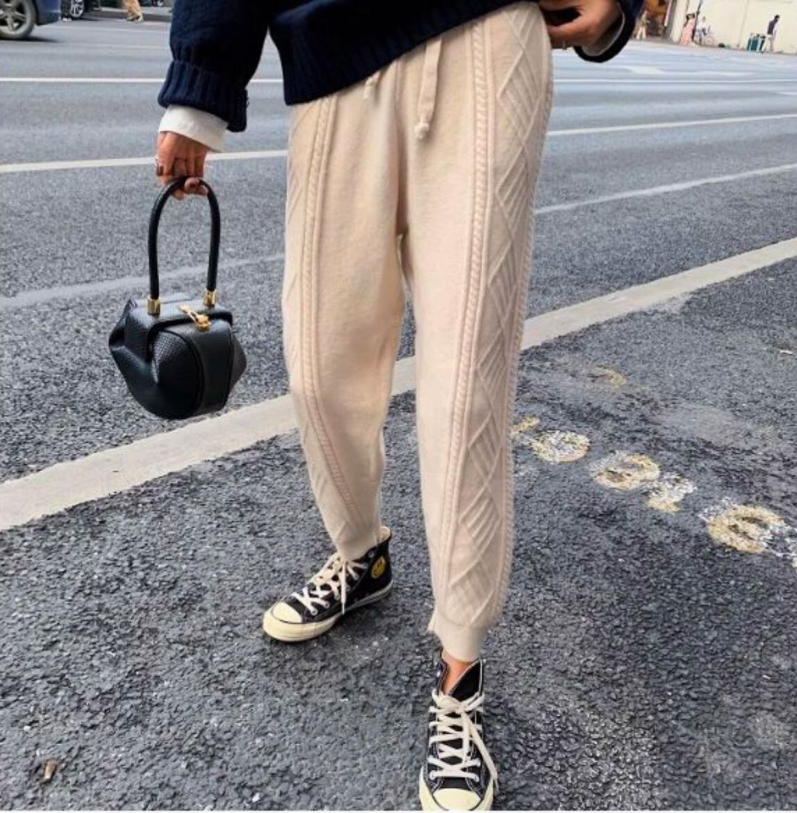 ケーブル編み ニットジョガーパンツ ジョガーパンツ ニットパンツ サルエル アラン編み イージーパンツ リラックスパンツ 美脚 レディース ロングパンツ ボトムス ズボン 秋冬 バルキー