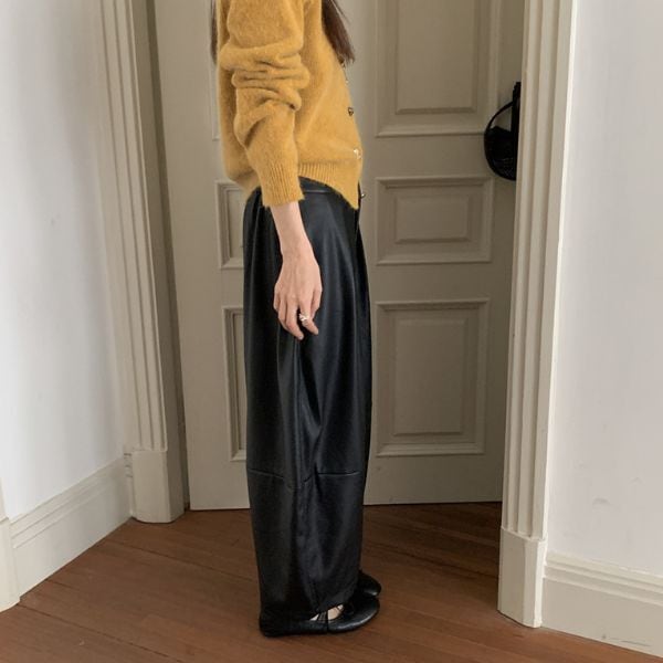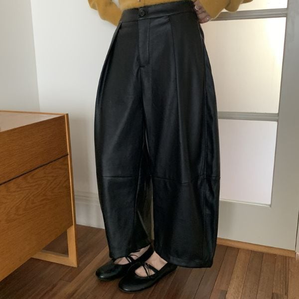カーブパンツ レザーパンツ タックパンツ ワイドパンツ レザー コクーン バレルレッグ パネルライン バレル 体系カバー スラックス 美脚