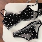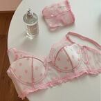 ドットレースブラショーツセット ドットレース ノンパテッドブラ オーガンジー シアー エンブロイダリー 刺繍 総レース 大きいサイズ シースルー 美胸 ノンパテッド 高級レース SEXY セクシー 透け ランジェリー ハート