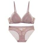 レースブラレット ノンワイヤーブラ 三角ブラ レース シースルー ノンパテッドブラ ワイヤレス セット 透け感 総レース ショーツ付き 下着 ランジェリー 大人 セクシー サテン シャイニー