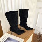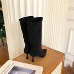 ルーズブーツ ショート丈 ショートブーツ 2way ウエスタン くしゅくしゅ ミドル丈ブーツ ピンヒール マニッシュ レディース 美脚 ヒール スクエアトゥ ストレッチ