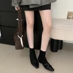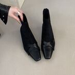 クロスデザインショートブーツ 切り替え チャンキーヒール 太ヒール スクエアトゥ ストレッチブーツ ブーツ ブーティ アンクルブーツ 美脚 疲れにくい 歩きやすい レディース ミドル スェードスエード ローヒール コンビ