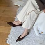 パンプス ポインテッドトゥ とんがり チャンキー ローファー シューズ フラット ペタンコ トラッド レディース マニッシュ 歩きやすい バレエ スエード 美脚"