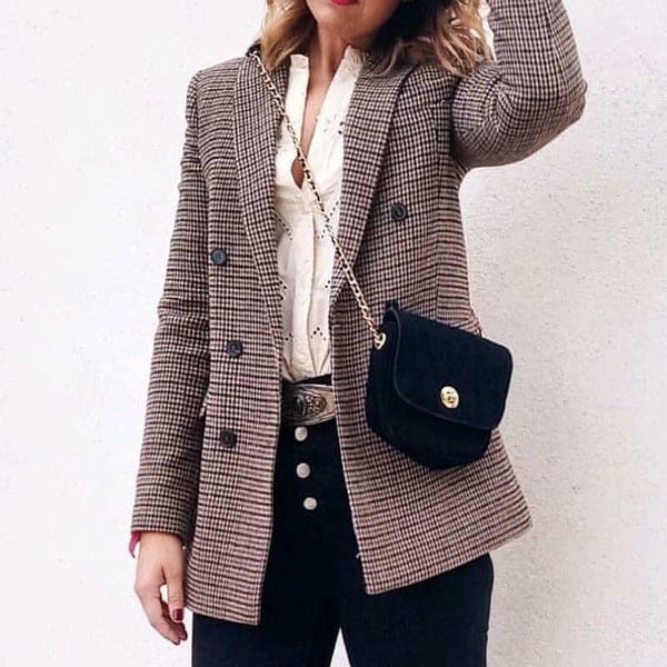 テーラードジャケット ダブルボタン 千鳥 グレンチェック ブリットチェック アウター 羽織 ダブル マニッシュ カジュアル レディース 秋冬 ジャケット シンプル ひざ丈 長袖 通勤 OL テーラード 起毛 sho18