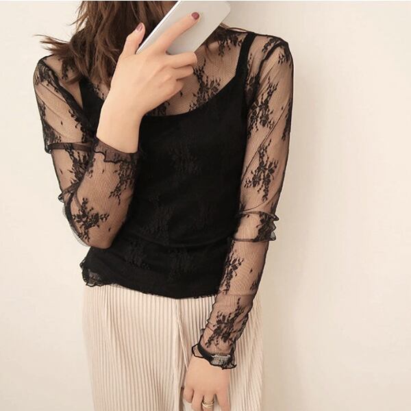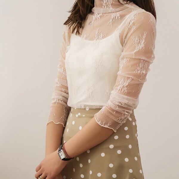 ブラウス レース 花柄 フェミニン エレガント トップス 総レース ハーフネック プチハイ レディース 透け シアー チュール レディース 春夏 レイヤード 肌見せ 重ね着 セクシー 見せ インナー