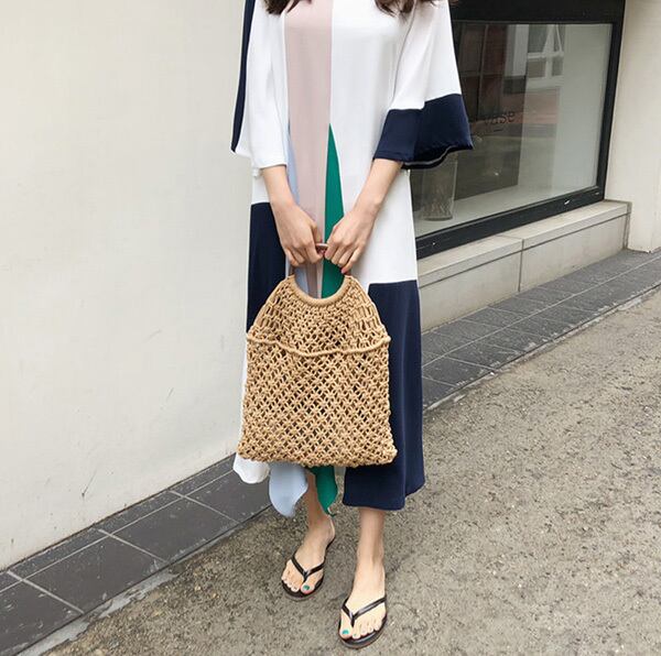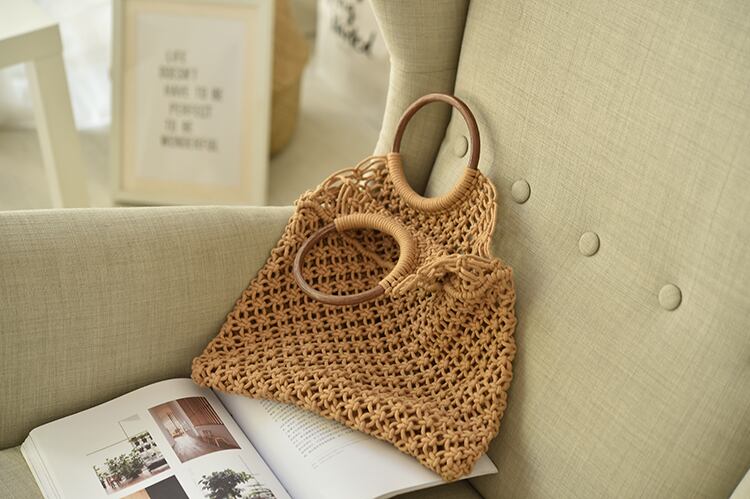 ネットバック マクラメ編 バンブー 竹 フィッシュネット 網バック ネットバック 編み ビーチ バンブー ハンドルバンブー トートバック ハンドバック カバン 手提げ インスタ 春夏