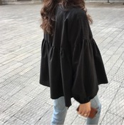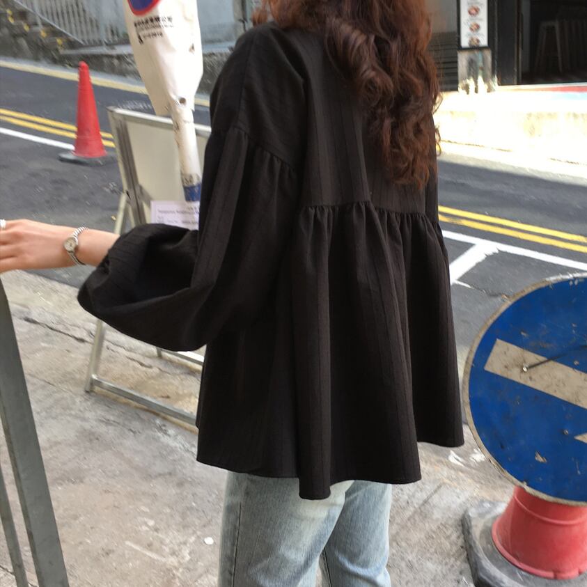 ブラウス チュニック ぺプラム プルオーバー シャツ ストライプシャツ レディース トップス 春夏 長袖 カットソー ぺプラムトップス ボリューム袖 バルーンスリーブ フレア トップス 体型カバー ストライプ ウエストマーク