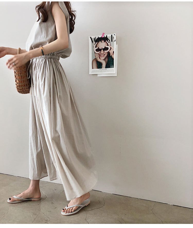 ワンピース タッセル フレンチスリーブ ノースリーブ ウエストリボン フリンジ 春夏 レディース Aライン レトロ ロング丈 フレア ミドル丈 リネン Vネック スキッパー ワンピ 綿麻 二の腕カバー