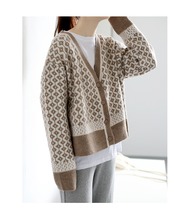 カーディガン ニット ノルディック アーガイル 求心柄 バルキー ダイヤ柄 総柄 レトロ セーター レディース 長袖 Vネック 重ね着 プルオーバー トップス ニットソー 秋冬 春夏 ざっくり 体型カバー