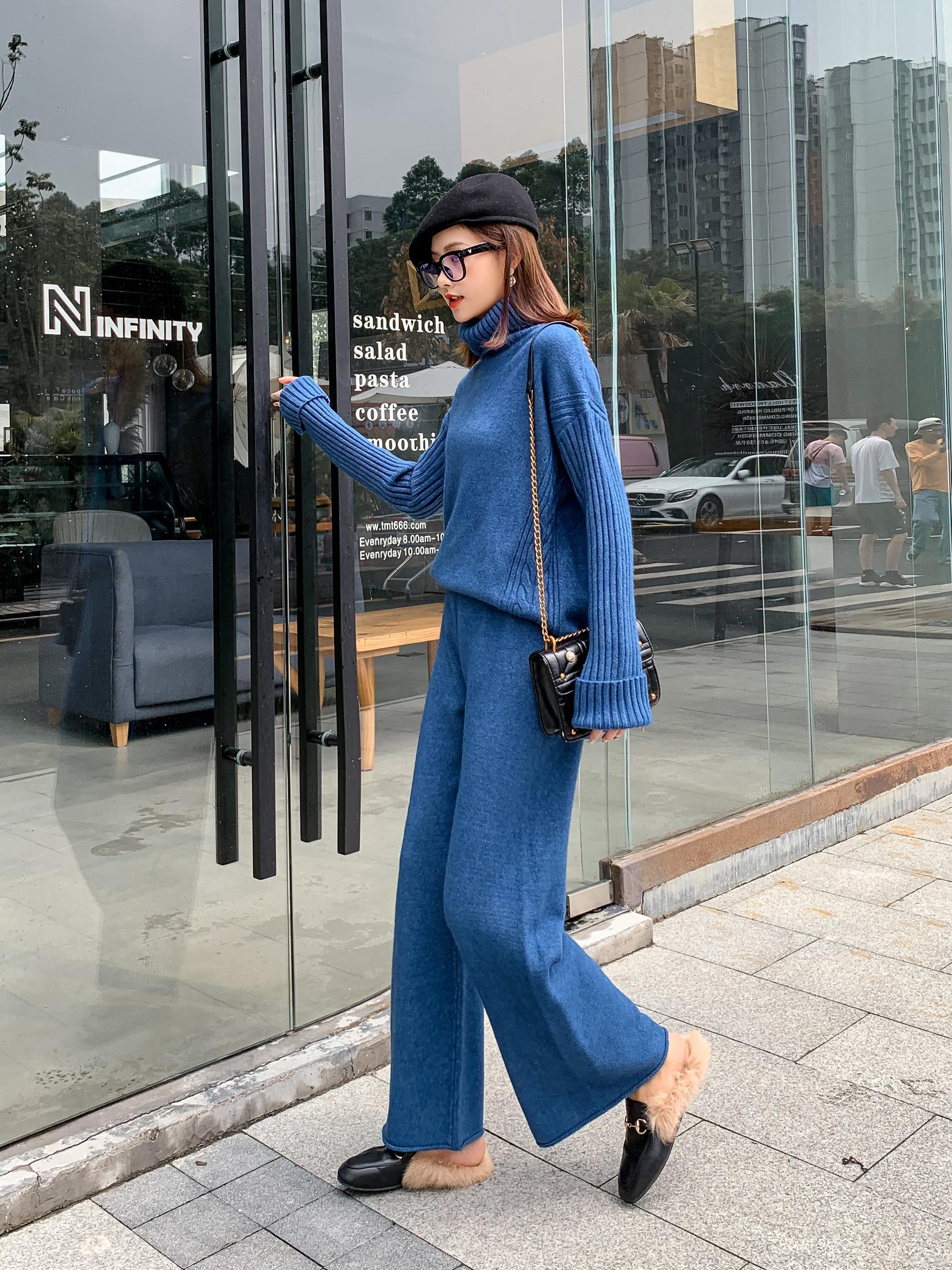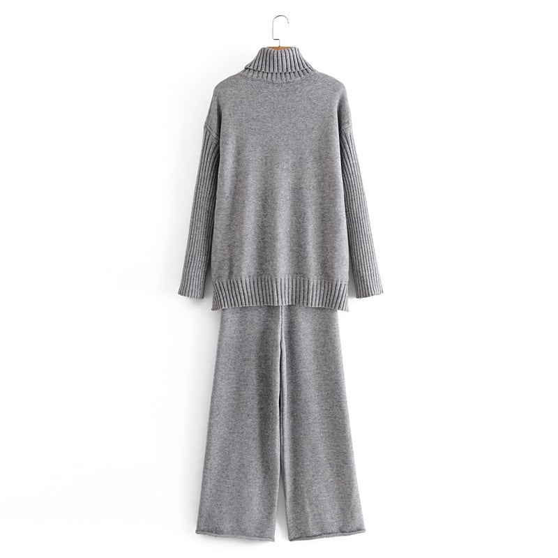 セットアップ ニットセットアップ ニット セーター レディース アラン編み ケーブル編み 秋冬 プルオーバー ワイドパンツ リブ タートルネック ハイネック 無地 厚手 ロングパンツ 2点セット ニットパンツ 長袖 リブパンツ スリット