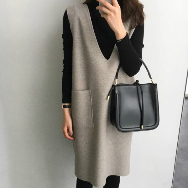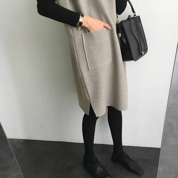 【即納】ワンピース Vネック ノースリーブ ワンピ ひざ丈 ミドル丈 ノースリーブワンピ レディース 秋冬 春夏 レイヤード 重ね着 ジョーゼット 無地 シンプル ヘリンボーン チェック 起毛 マタニティ 妊婦
