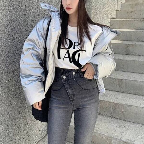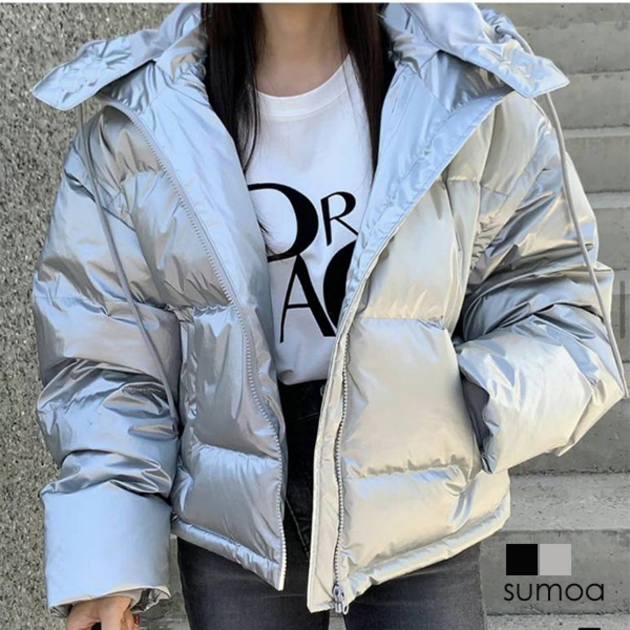 ダウンジャケット ショートダウンジャケット 中綿 ダウン コート ジャケット ブルゾン ジャンパー ショート丈 無地 軽量 レディース アウター トップス 防寒 羽織 軽量 シルバー