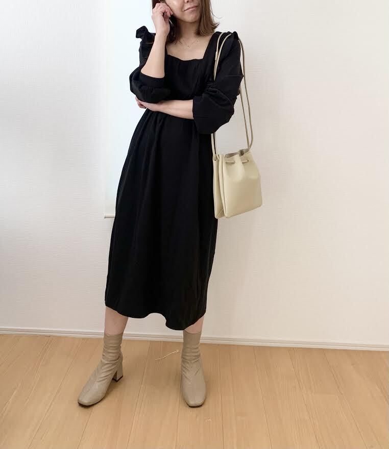 【即納】スクエアネックワンピース パフスリーブ パフ ひざ丈 コクーンワンピース フリルショルダー 背中開き 長袖 スクエアネック フリル ロングワンピ ガーリー フェミニン 大人ワンピ 秋冬 無地 レディース コーデュロイ ひざ丈 スウェード スエード