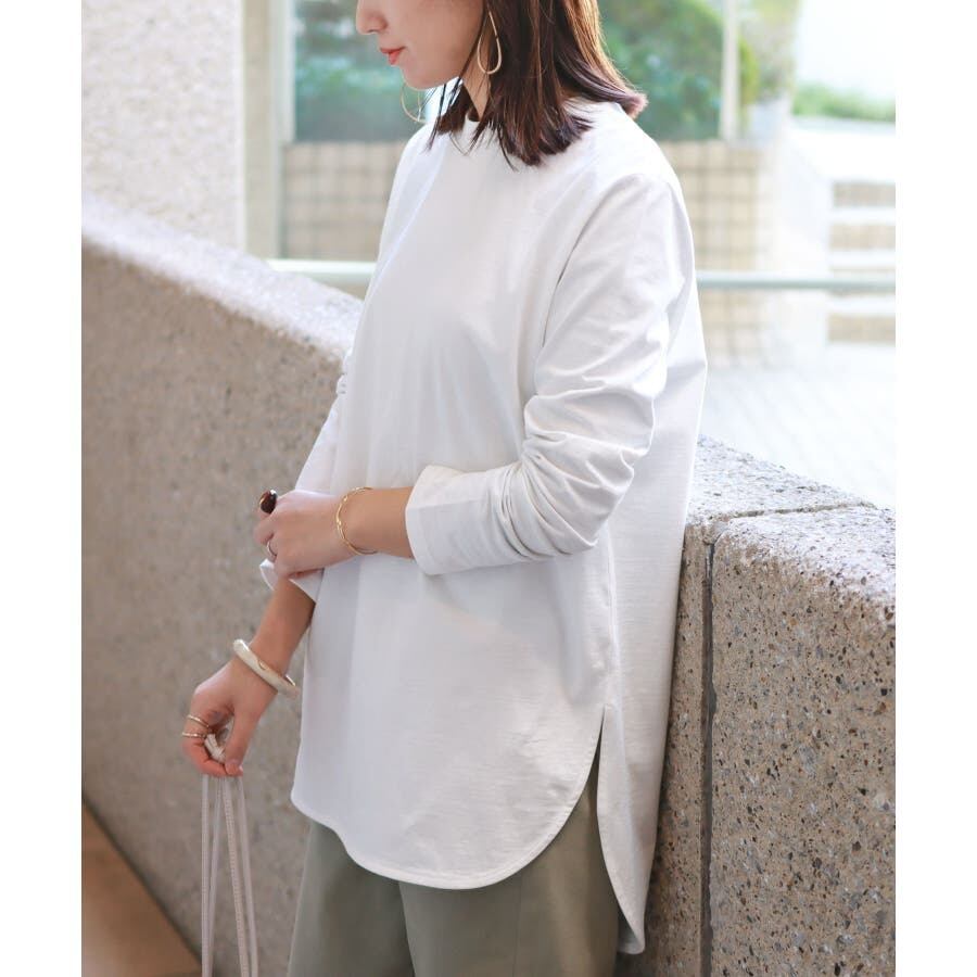 カットソー Tシャツ レイヤード 重ね着 チュニック ビック 大き目 ドロップショルダー ロンT ゆったり ラウンドヘム ラウンドネック 長袖 プルオーバー レディース 秋冬 春夏 体型カバー 無地