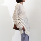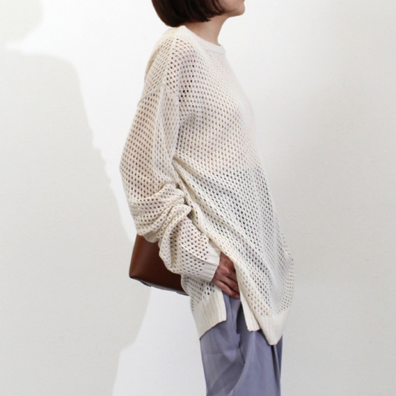 【即納】Tシャツ フィッシュネット メッシュ 透け かぎ編み プルオーバー カットソー オーバーサイズ 長袖 ロングカットソー レイヤード 重ね着 ドロップショルダー ゆったり ラウンドネック レディース 秋冬 春夏 体型カバー 無地
