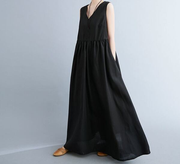 ワンピース Vネック 2way ノースリーブワンピ Aライン マキシワンピ ノースリーブ マキシ丈ワンピース タンクワンピ レディース 無地 シンプル マキシ コットン 綿 楽ちん ワンピ 春夏 体型カバー リゾート ビーチ レイヤード 重ね着 ロング