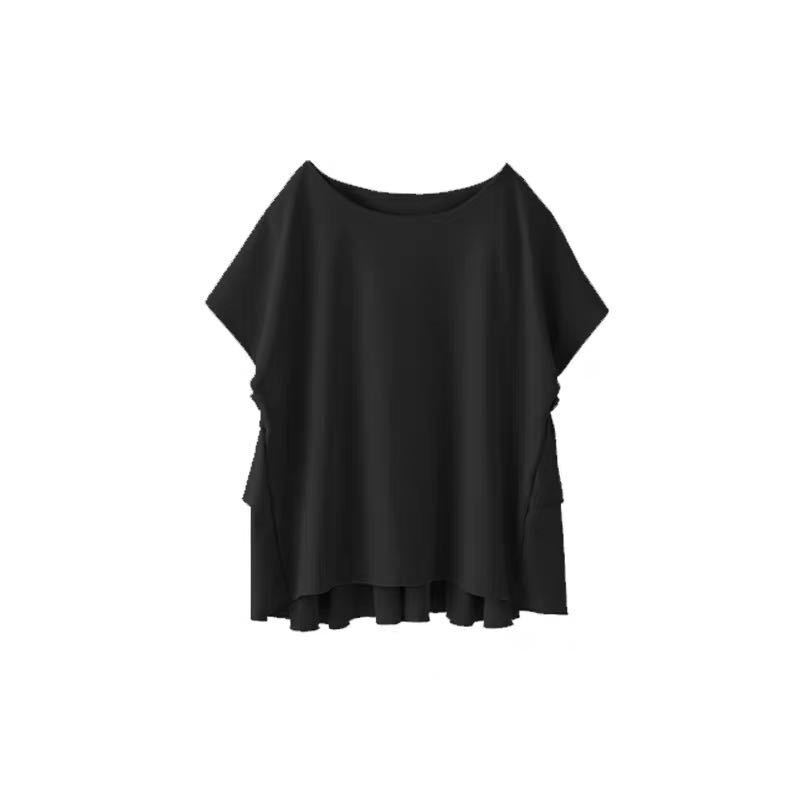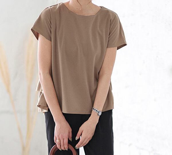 カットソー バックフリル フリル 2段フリル フレンチスリーブ ブラウス バックコンシャス Tシャツ コットン 半袖 ティアード 切り替え トップス ゆったり 体型カバー Tシャツ 半袖 レディース 春夏 定番 無地 上品 大人 高見え OL 通勤