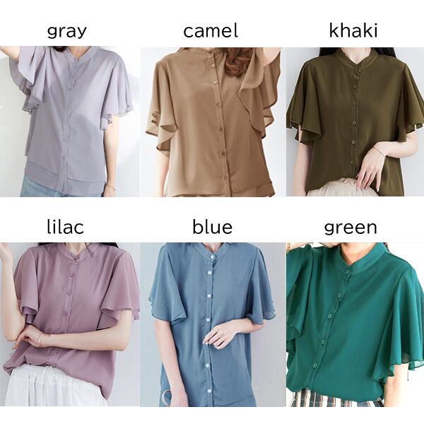 \期間限定/ブラウス フリルスリーブ ラッフルスリーブ シアー ティアード フリル プルオーバー シフォンブラウス シフォン フレア コンシャス 半袖 トップス ゆったり 体型カバー 半袖 レディース 春夏 定番 無地 上品 大人 高見え OL 通勤