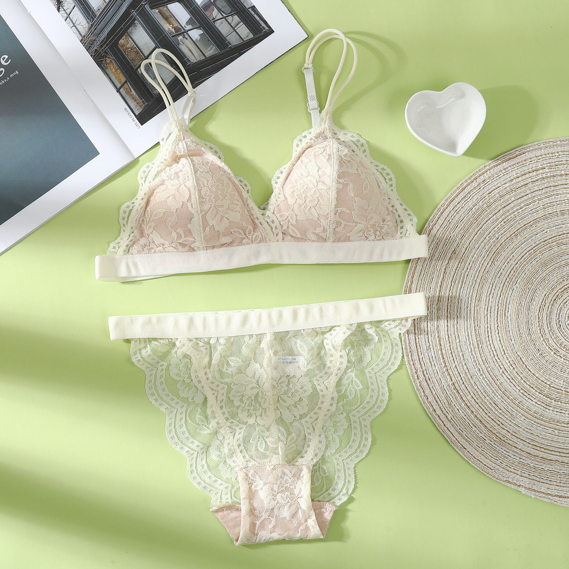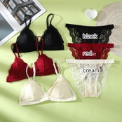 ブラレット ノンワイヤー 三角ブラ ワイヤレス レース シースルー 解放感 ノンパテッドブラ セット 透け ノーカップ ノーパテッド 総レース ブラショーツ 下着 ランジェリー セクシー ナイトブラ 魅せブラ レイヤード 重ね着 ショーツ パッド