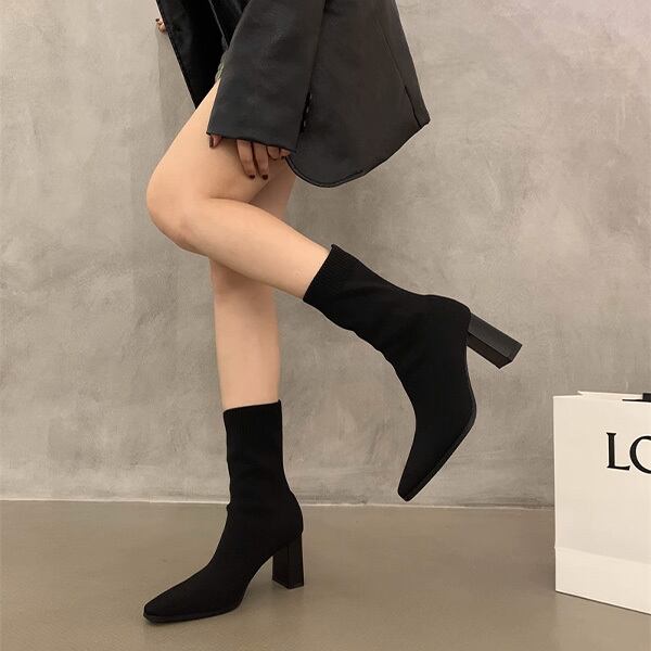 ソックスブーツ ニットブーツ ショートブーツ ストレッチブーツ エンジニア ブーツ 靴 秋冬 ブーティ ラウンドトゥ ローヒール アンクルブーツ 美脚 疲れにくい チャンキーヒール 太ヒール 歩きやすい レディース スエード