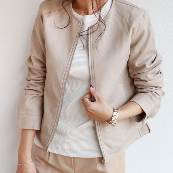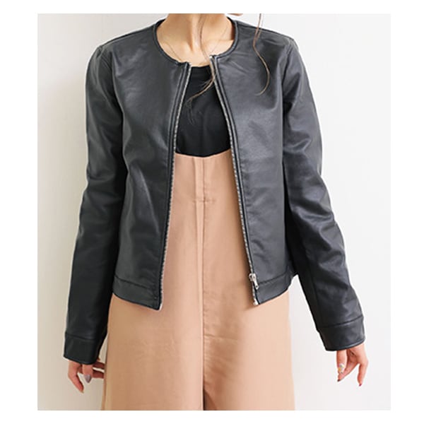 ライダースジャケット ノーカラー レザージャケット ジャケット ブルゾン シングル ライダース ショートジャケット ミリタリー アウター フェイクレザー PUレザー レディース 秋冬 春夏 定番 羽織 無地 シンプル エレガント OL 通勤 カジュアル