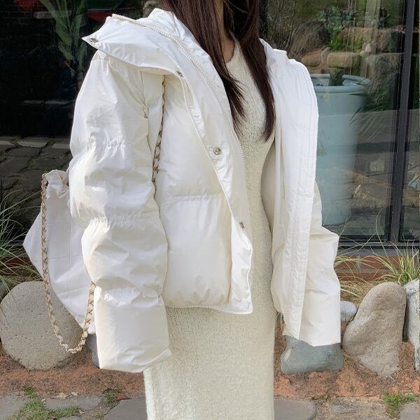 ダウンジャケット フード 中綿 ダウン コート ジャケット ブルゾン ジャンパー ショート丈 無地 アウター あたたか 防寒 羽織 軽量 ミリタリー 保温 エコ