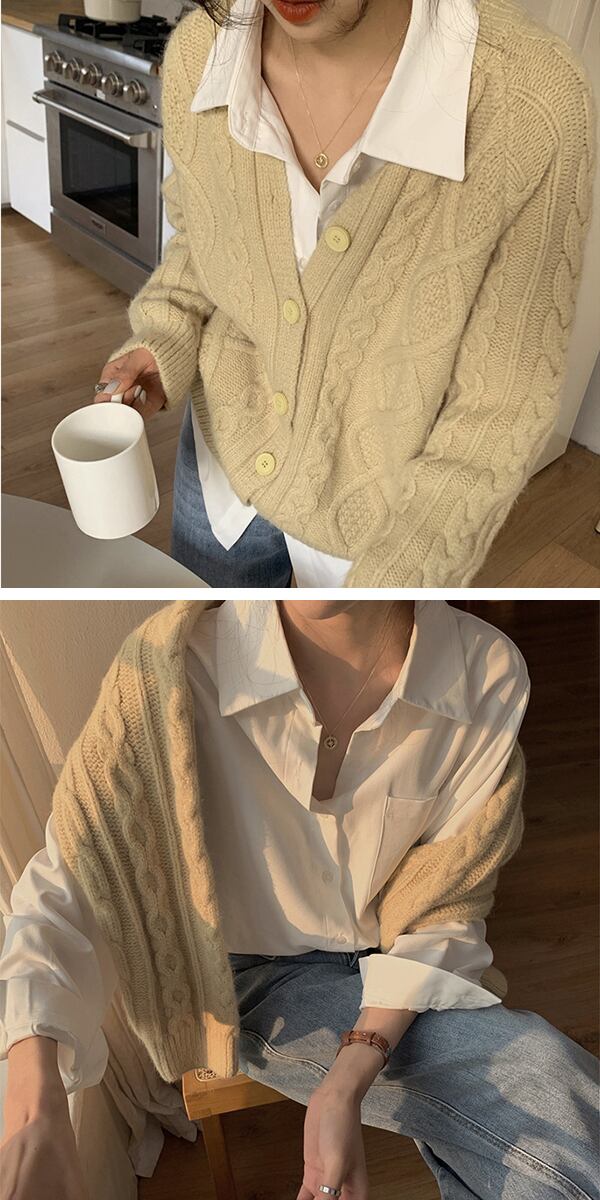 カーディガン ニットカーディガン ざっくり ガウン ニット ケーブル編み ジャケット アウター レディース 羽織 長袖 秋冬 編み込み 体型カバー ノーカラー グリーン ショート丈 イエロー