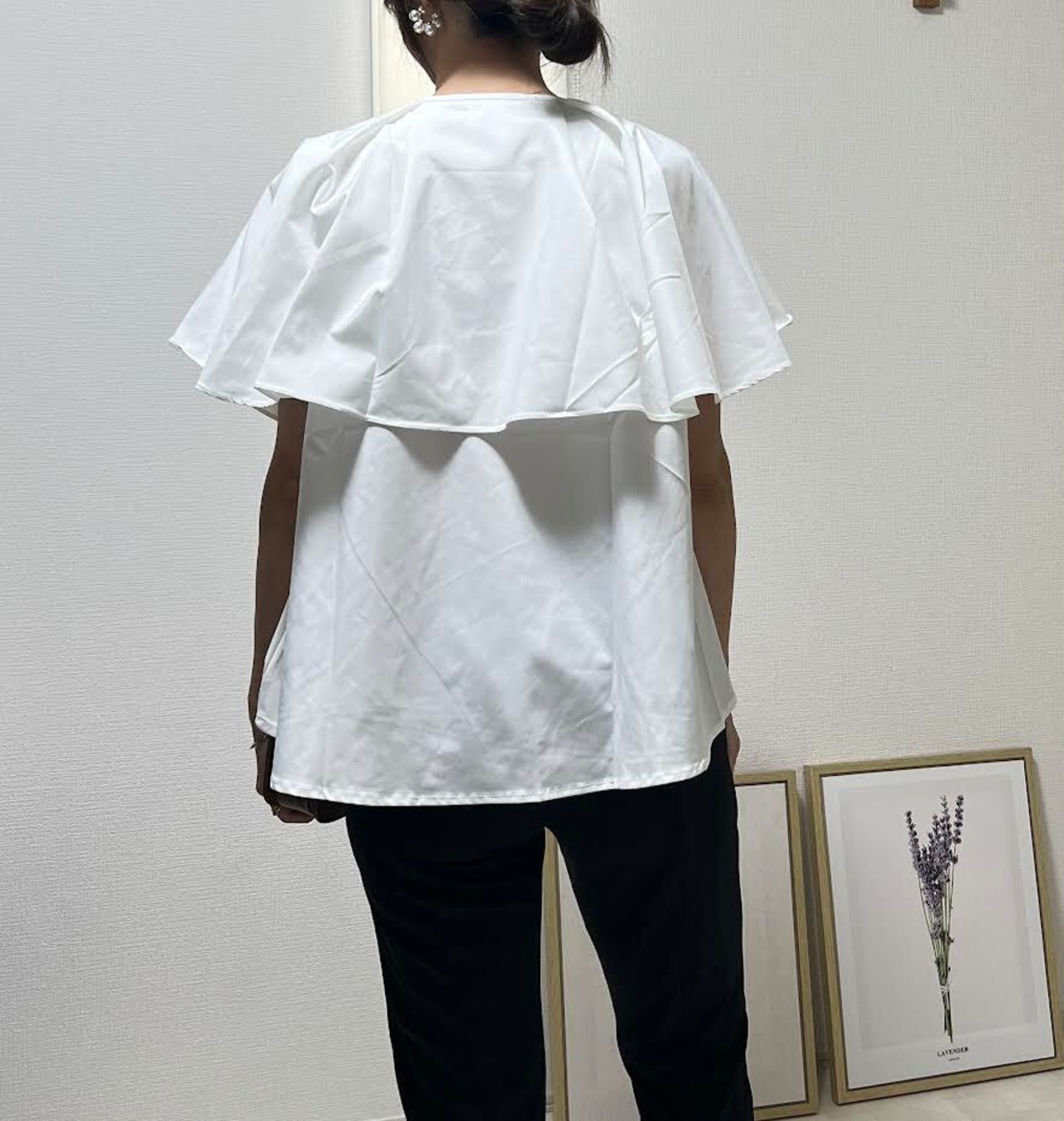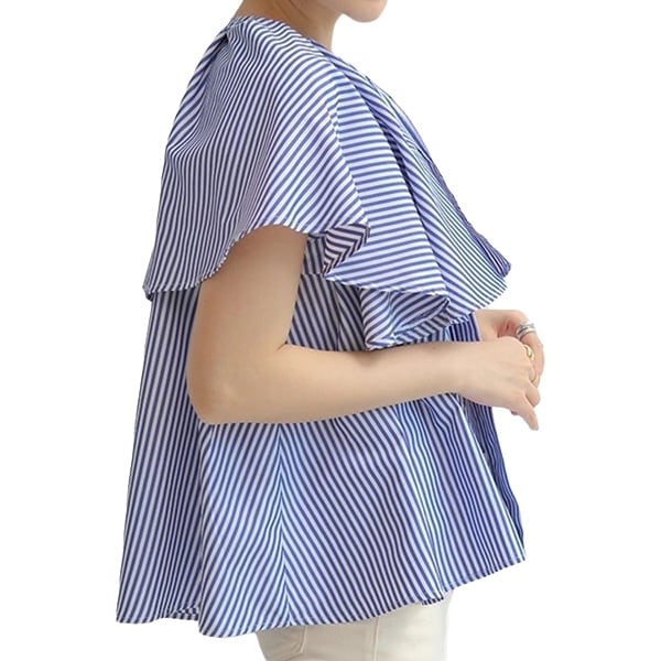 ケープブラウス フレアスリーブブラウス ストライプ フレアー ケープカラーブラウス シルケット シャツ レディース カットソー 春夏 ノースリーブ 二の腕カバー 体型カバー ケープカラー ビックカラー ブラウス 無地 オフィス OL カジュアル