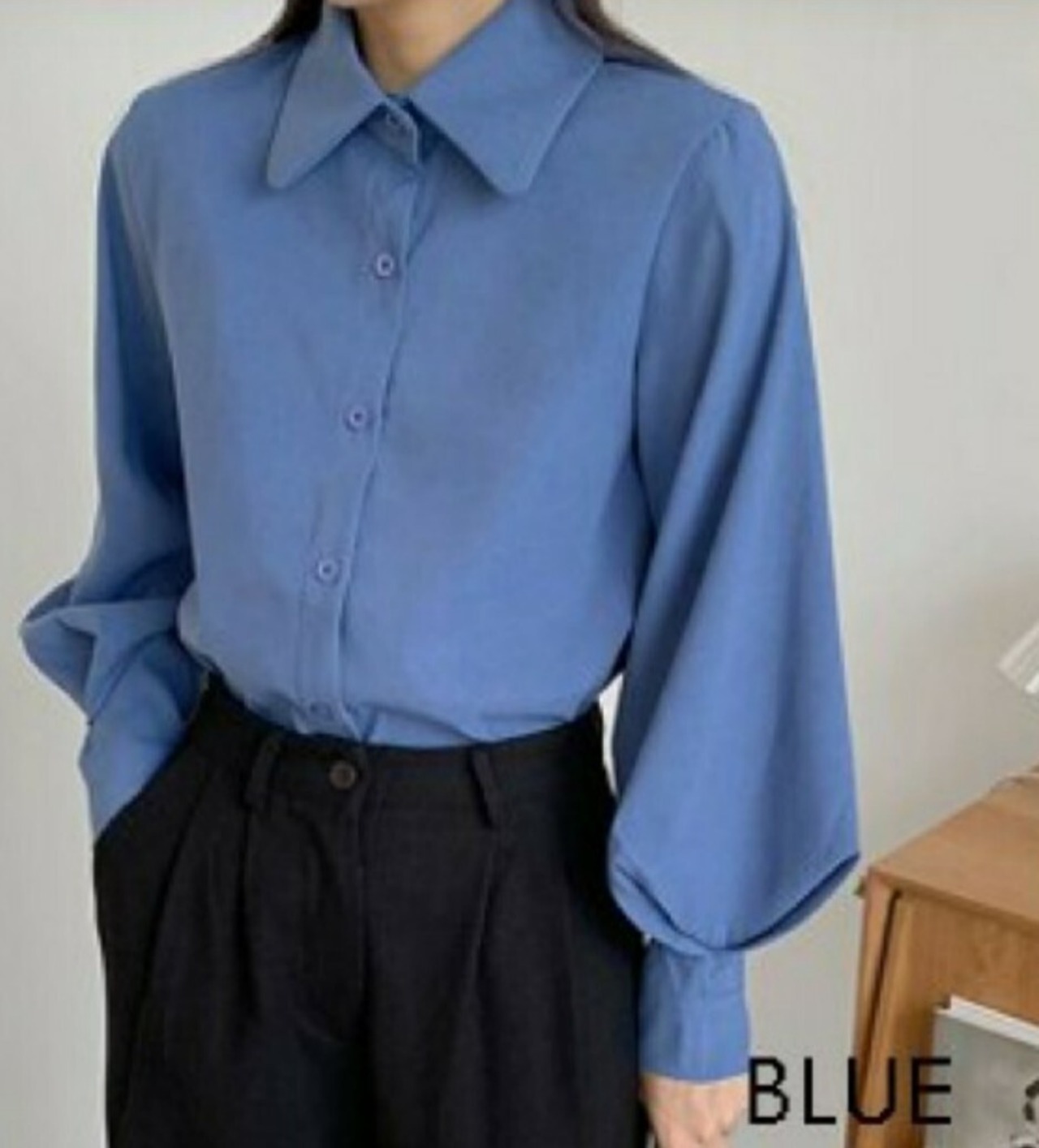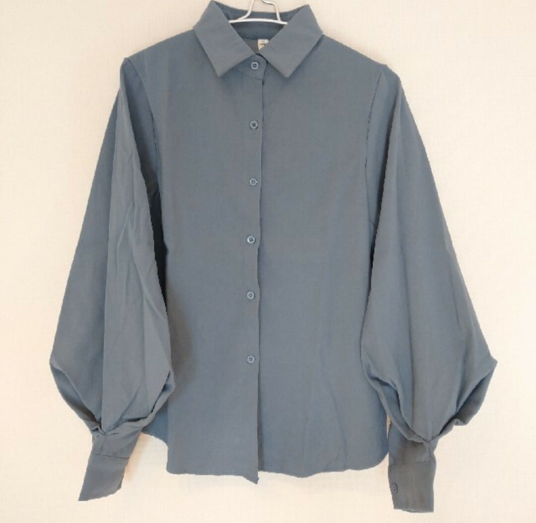 ブラウス シャツ ブルー ぽわん袖 ぽわん バルーンスリーブ
