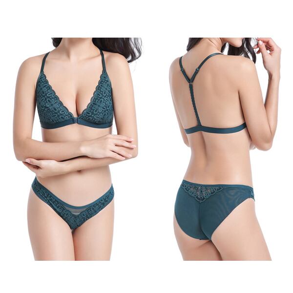 ブラレット ノンワイヤー 三角ブラ フロントホック レース 背中魅せ Yバック レイヤード ブラジャー ブラショーツ 下着 セット 花柄レース ナイトブラ ヨガ スポブラ スポーツ お家ブラ 楽ブラ ランジェリー 上下セット