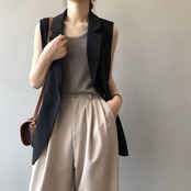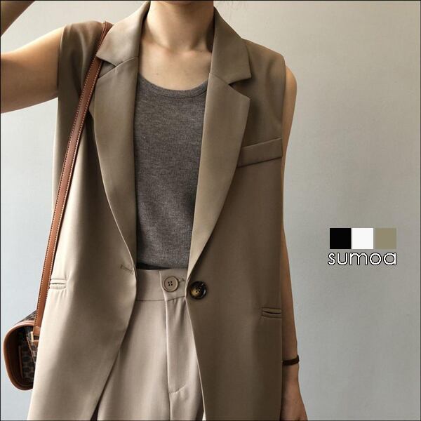ベスト ジャケットベスト ロングジレ テーラード トレンド テーラード ロングベスト レディース ノースリーブ ジレベスト トップス 着回し レイヤード シンプル