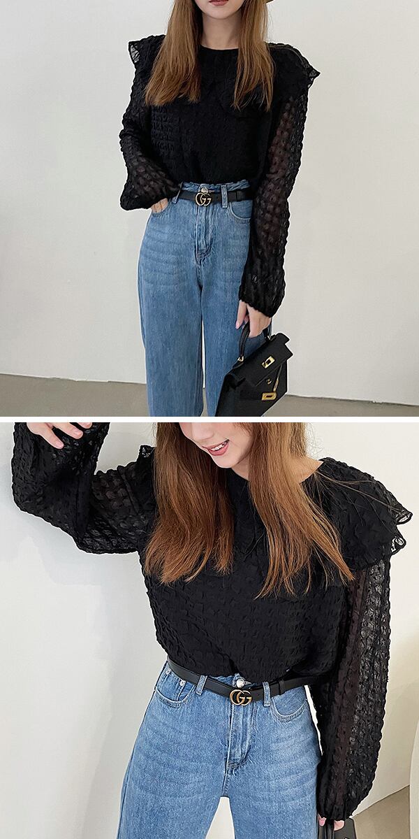 プルオーバー ビッグカラー デザインカラー シアー 透け感 襟付き ブラウス トップス ゆったり 体型カバー レディース 春夏 無地 上品 大人 高見え おしゃれ