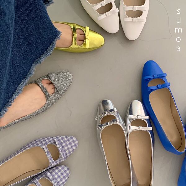 パンプス リボンパンプス シューズ 靴 レディース ラウンドトゥ チェック 春夏 秋冬 安定 歩きやすい ぺたんこ カジュアル
