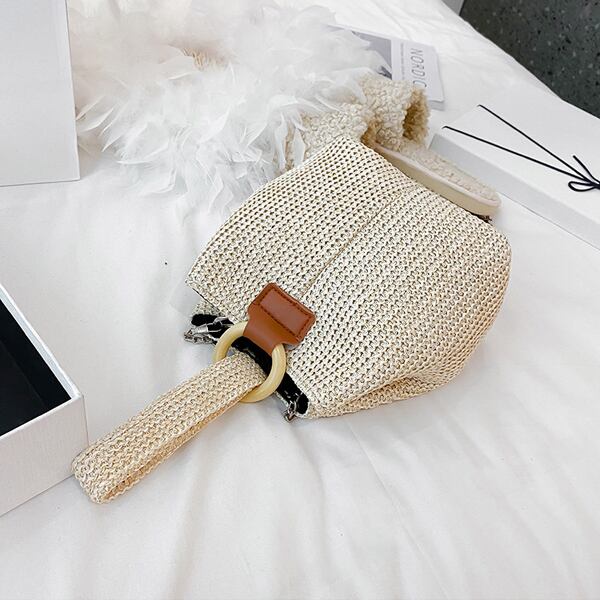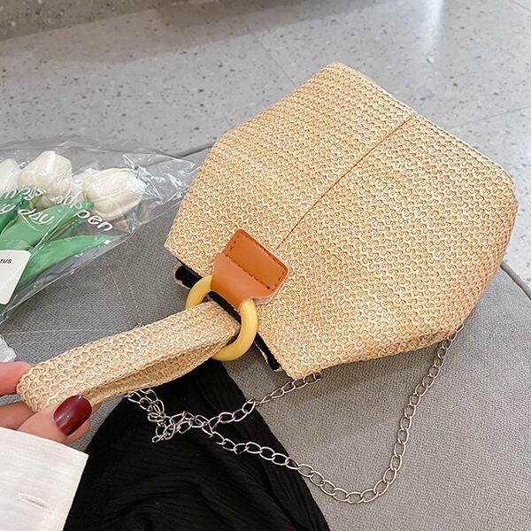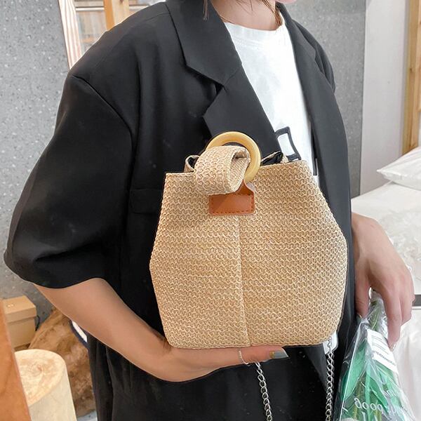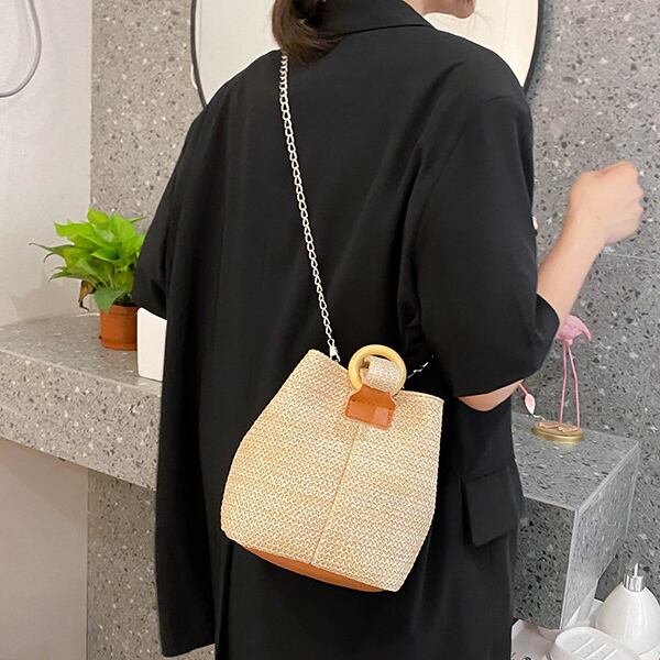 かごバック チェーン ショルダーバック 巾着 ミニバック ワンハンドル かご カゴ ハンドバック ストローバック ショルダーバック 2way マルチバック ウッド 軽量 小さめ 斜め掛け 韓国 肩掛け