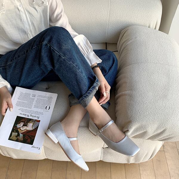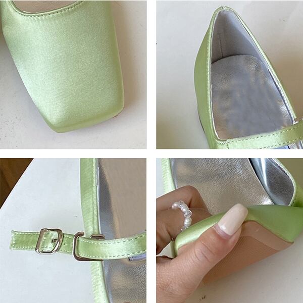 パンプス ストラップ スクエアトゥ バックル サテン ローヒール ローファー シューズ フラットシューズ ペタンコ トラッド レディース 春夏 秋冬 ぺたんこ 歩きやすい 痛くない バレエ