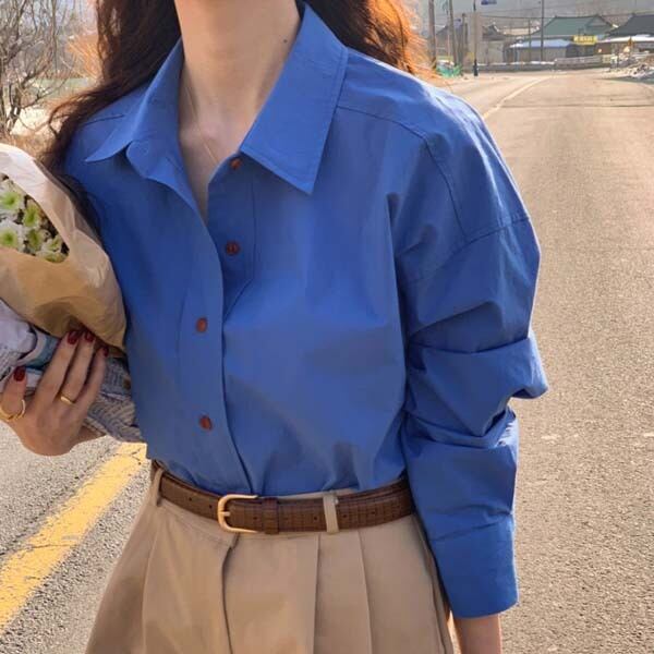 カラーシャツ カッターシャツ シャツ ブラウス 長袖 レディース 大人 きれいめ 春夏 カジュアル 韓国 通勤 OL デイリー グリーン ブルー パープル インナー 重ね着