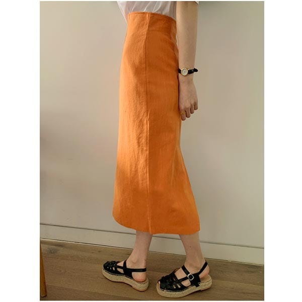 リネンタッチ タイトスカート Iラインスカート ひざ下 リネンライク ラップスカート ペンシルスカート スリット みもれ丈 スカート レディース 春夏 夏 韓国 カジュアル ブルー オレンジ