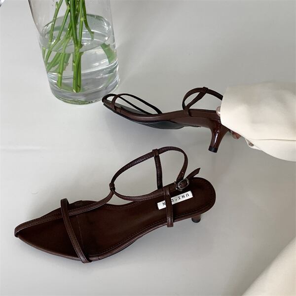 サンダル Tストラップ ストラップ アンクルストラップ ローヒールサンダル レディース ミュール 細ストラップ 春夏 レディース ポインテッドトゥ 韓国 ハイヒール