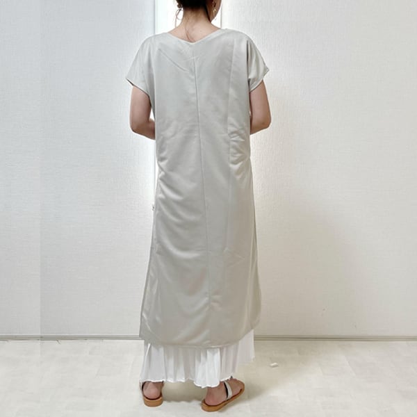 キャミソールワンピース ワンピース プリーツ キャミワンピ フレンチスリーブ シフォン レディース レイヤード フレアー ロングワンピース 無地 シンプル スリット 2点セット