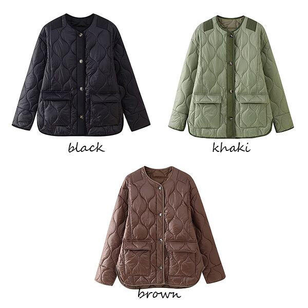キルティングジャケット ダウンジャケット ノーカラージャケット キルティング コート ジャケット アウター ジャケットコート レディース 軽量 長袖 秋冬 ダウン 中綿 防寒 ノーカラー ブルゾン