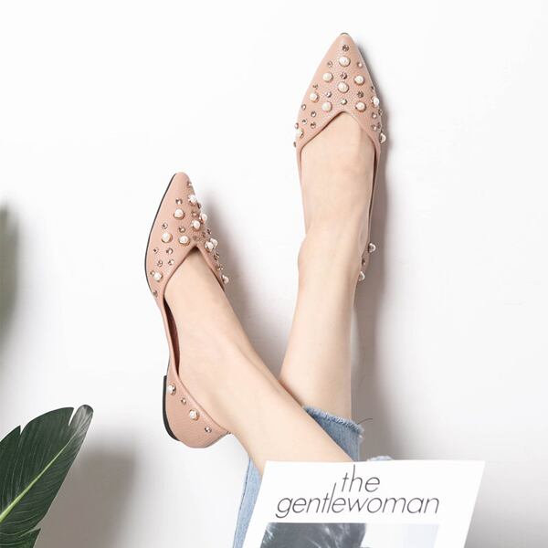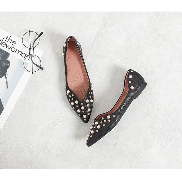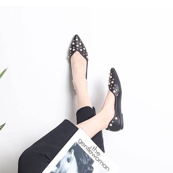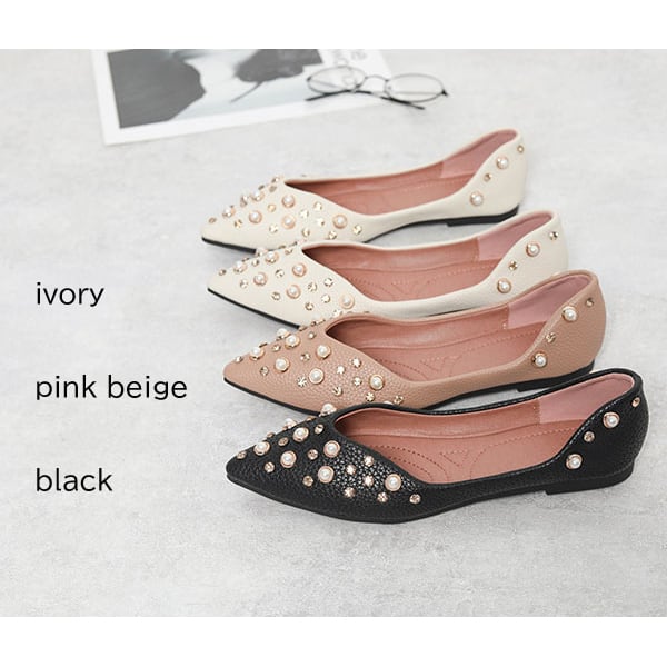 【セール】パール付き パンプス ポインテッドトゥ パールビジューパンプス パール スタッズ ビジュー フラット シューズ ぺたんこ ペタンコ 楽ちん ポインテッドトゥ セパレート 靴 レディース バレエ 安定 歩きやすい ミュール