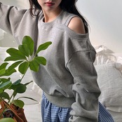 トレーナー 肩出し オープンショルダー トレーナー プルオーバー ワンショルダー ワンショル スウェット ラウンドネック レイヤード レディース プルオーバー 重ね着 長袖 体型カバー カジュアル カットソー