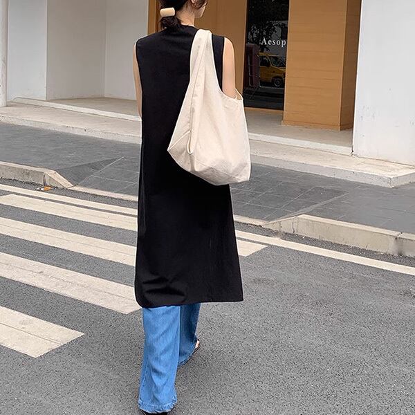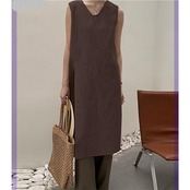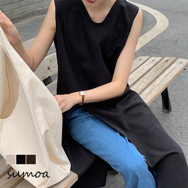 ロングVネックベスト リネンベスト リネン カットソー ベスト ジレ Vネック ノースリーブ ロング丈 スリット チュニック トップス レディース 薄手 タンクトップ ワンピース