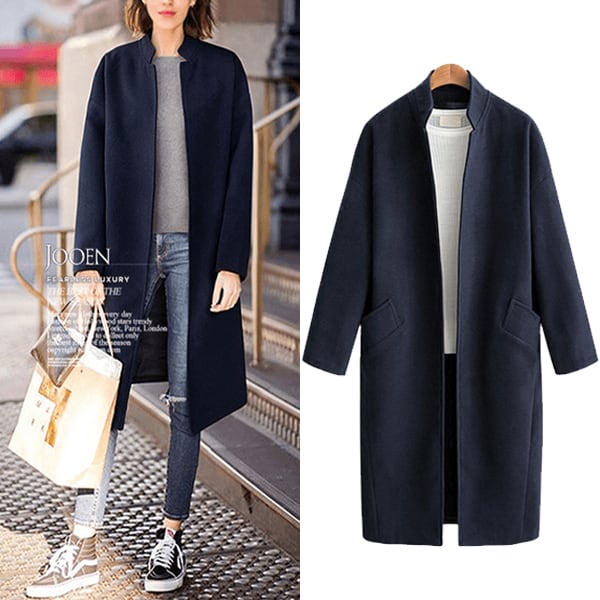 ロングチェスターコート アウター レディース ノーカラー メルトンコート ウール コート チェスター
