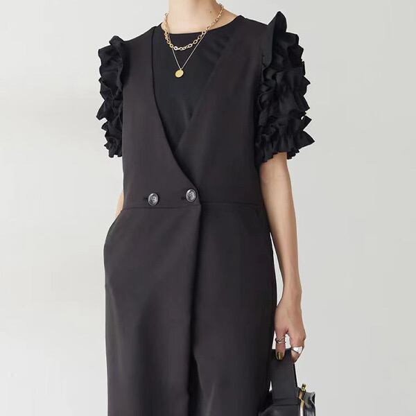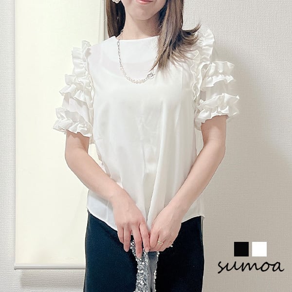 ブラウス フリルショルダー 肩フリル ランタン袖 フリル袖 シャツ 七分袖 シャツ フリルブラウス パフ プルオーバー レディース カットソー フリルスリーブ 体型カバー 無地 トップス OL 通勤 韓国