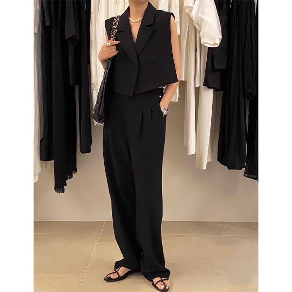 セットアップ レディース ベスト ジレ ノースリーブ 上下セット スラックス ワイドパンツ ペプラム フレアパンツ サマー スーツ Aライン スーツ ビジネス 通勤 OL